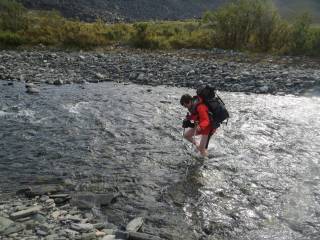 erkunden die Gegend. Mit einer "gefährlichen" Flussüberquerung und